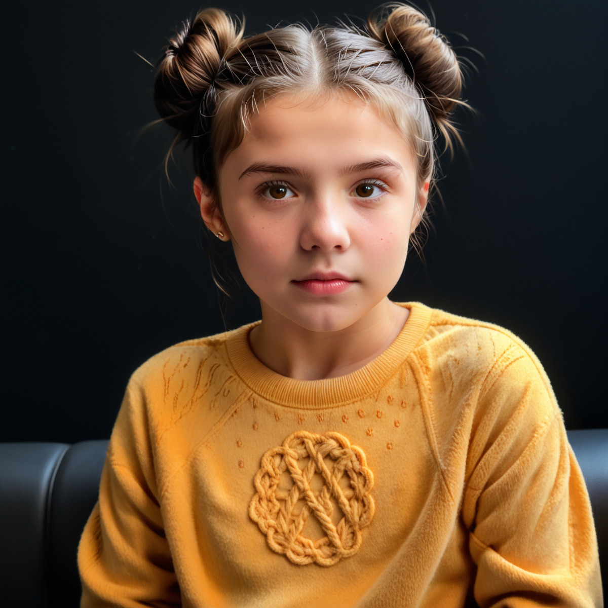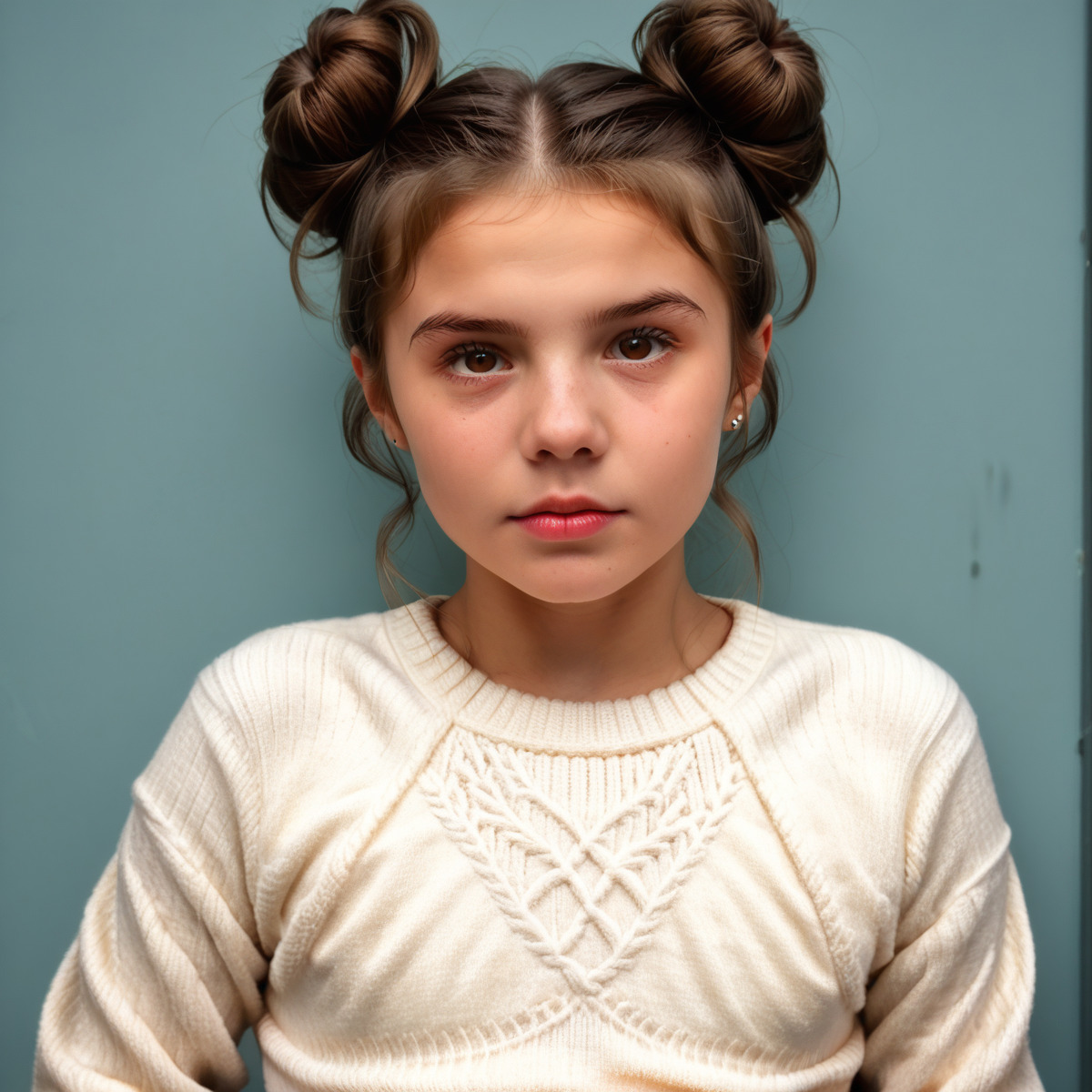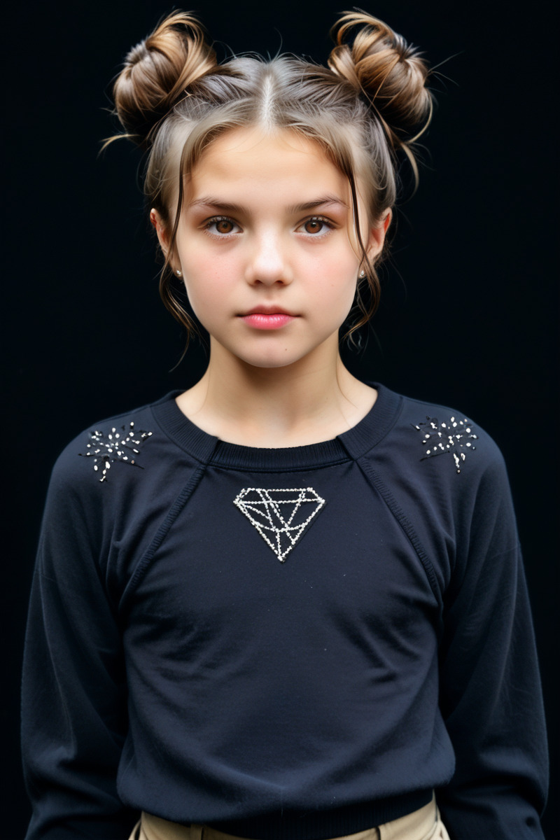 Positive Prompt: score_9, score_8_up, score_7_up, score_6_up, score_5_up, score_4_up, 1girl, AIDA_PXLR_PiRoCh, flat chest, flat_chest, 10yo, hair bun, double bun, hair_bun, double_bun, sweater, portrait, upper body, upper_body, cowboy shot, cowboy_shot, sharp focus, sharp_focus, distant shot, distant_shot, character concept, character_concept, black background, black_background, simple background, simple_background, Kodachrome